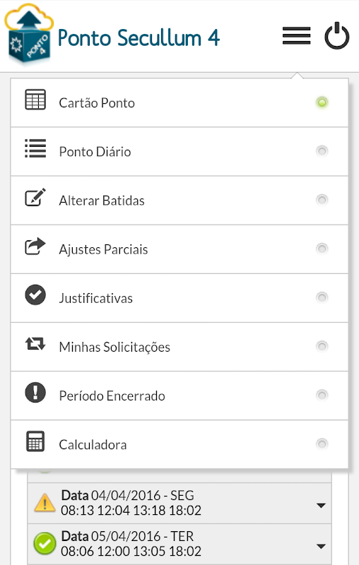 주의 :이 응용 프로그램은 Ponto Secullum 4와 함께 작동합니다. 응용 프로그램을 사용하기 전에 근무하는 회사에이 기능이있는 서비스가 있는지 확인하십시오.