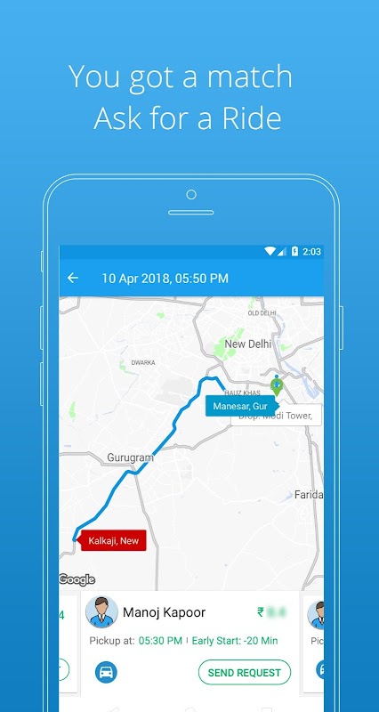 ->5. If you find good matches on your route send request to the driving partner