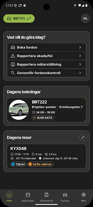 Portify GO에서 차량 풀의 차량을 직접 예약 한 다음 앱에서 예약을 관리하십시오.