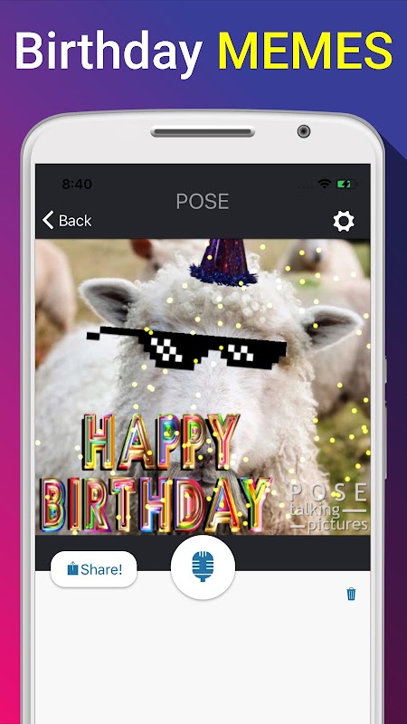 메시지를 녹음하여 얼굴 대화의 그림을 만듭니다. 버튼 하나로 얼굴 표정을 바꿔보세요! 재미있는 스티커를 추가하십시오. 작품을 비디오로 저장하고 소셜 미디어에 게시하십시오! POSE는 최고의 대화 사진 앱입니다.