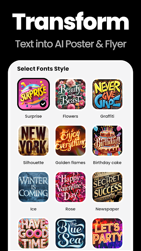 Poster Maker AI를 사용하면 멋진 포스터, 전단지, 그래픽을 만드는 데 디자인 기술이 필요하지 않습니다. 당사의 AI 기반 앱은 그래픽 디자인을 단순화하여 누구나 이벤트, 비즈니스 프로모션, 마케팅 캠페인, 소셜 미디어 등에 대한 아름다운 시각 자료를 생성할 수 있도록 해줍니다.