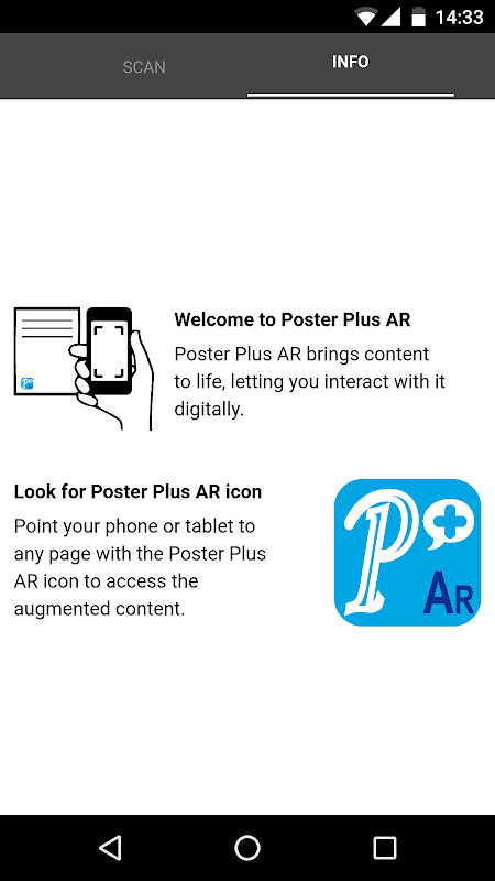If you see the Poster Plus AR pictogram on a brochure, poster, sign, display, packaging, door, machine… the physical object is augmented with virtual information which can be accessed through the Poster Plus AR.