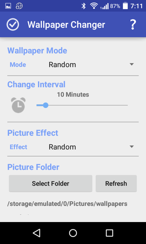 ► Wallpaper Changer - Change HomeScreen wallpaper on a time interval. You can set to randomly or sequentially change the wallpaper. Option to set the wallpaper effect like Normal, Black & White or Sepia. Just select a folder and enjoy your wallpapers