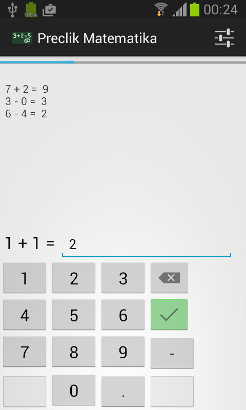 Pokud jsou všechny příklady vypočteny správně, přehrává zvolený audio soubor.