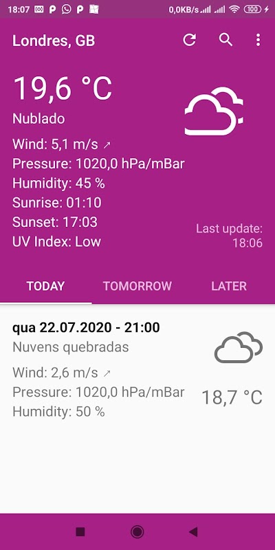 This is a great application to stay updated with the weather conditions in your location. "Weather Forecast" is designed to be as simple and intuitive as possible. This application uses OpenWeatherMap as a data channel and the weather updates are small and easy to access.
