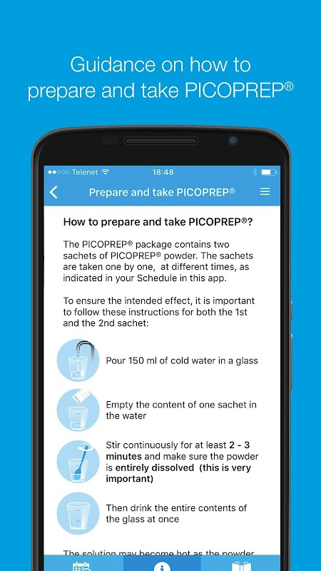 - 프리 피트 응용 프로그램은 또한 대장 내시경 검사에 대한 각 프로세스의 단계와 방법을 준비하고 PICOPREP®의 약을 복용하는 방법뿐만 아니라 일반 정보에서 식사 및 음료 (그리고 피하기 위해 무엇을)해야하는지에 대한 지침을 제공합니다.