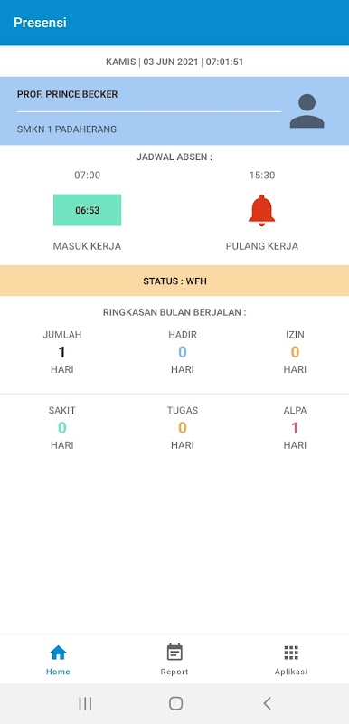 Berbasis mobile yang digunakan untuk pegawai SMKN 1 Suliki, daftar hadir pegawai dengan sistem absen foto dan lokasi, dilengkapi pemilihan lokasi bekerja dari kantor (WFO) atau dari luar kantor (WFH). Pegawai dapat mengajukan Izin apabila berhalangan hadir.