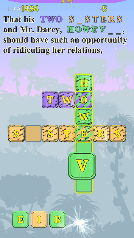 각 레벨에서 텍스트 아래의 십자말풀이 퍼즐을 풀어서 채울 수 있는 몇 가지 빠진 단어와 함께 이야기의 한 섹션이 표시됩니다. 채우는 각 문자는 텍스트 자체에 나타납니다. 우리는 게임을 매우 쉽게 제어할 수 있도록 만들었습니다. 십자말 풀이 아래의 각 문자를 한 번만 터치하면 됩니다. 모든 단어는 고유한 색상으로 색칠되어 있고, 십자말풀이 밖에 있는 글자도 색칠되어 있습니다. 플레이어는 단어의 올바른 순서로 터치하여 글자를 단어로 채워야 합니다. 플레이어가 터치하는 각 문자는 동일한 색상의 단어에서 사용 가능한 첫 번째 위치로 바로 이동합니다. 문자가 잘못된 위치에 있으면 깜박이는 노란색 점이 표시됩니다. 플레이어는 잘못된 위치에 있는 문자의 배치를 쉽게 수정할 수 있습니다. 터치하면 밖으로 점프하고 플레이어는 단어에서 다음 자유 위치에 속하는 올바른 문자를 터치해야 합니다. 두 단어에 속하는 문자는 두 단어의 색상으로 대각선으로 표시됩니다. 사용자가 이러한 문자를 만지면 올바른 위치로 바로 이동합니다.