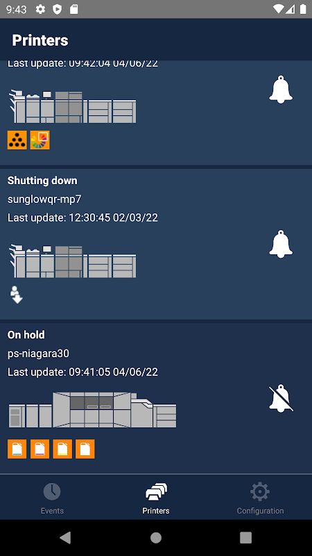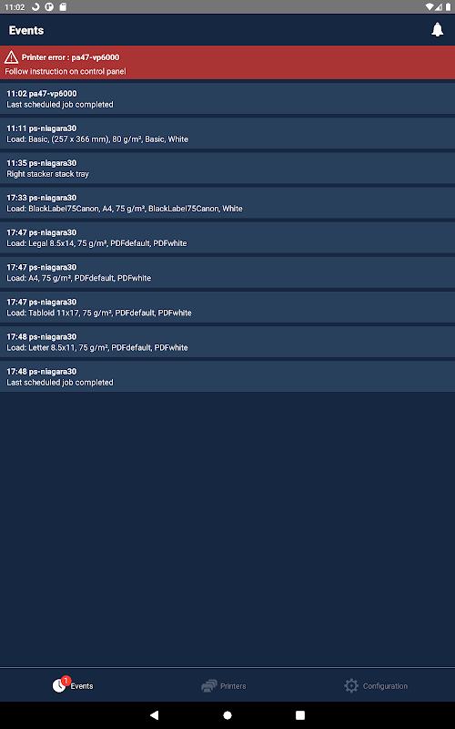 스마트폰의 PRISMAsync 원격 제어를 사용하면 PRISMAsync 기반 프린터의 상태를 한 눈에 볼 수 있습니다. 미디어 로드 또는 소모품 추가와 같은 작업자 작업이 예상되면 경고를 받습니다. 또는 프린터 문제로 인해 즉각적인 조치가 필요한 경우. PRISMAsync Remote Control을 사용하면 다른 작업을 하는 동안에도 프린터를 계속 인쇄할 수 있습니다.