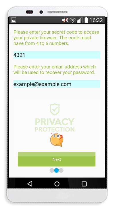 Once you install the app, you will have to insert your secret code and a valid email address. Then, you’ll just have to digit your secret key on the keyboard of the calculator and you are ready to start browsing!