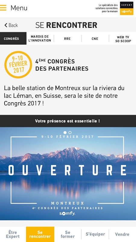 Votre appli Programme Expert Somfy évolue en 2017 ! Retrouvez la totalité de votre Programme Expert et de vos avantages dans ce nouvel outil plus complet, rapide et fluide.