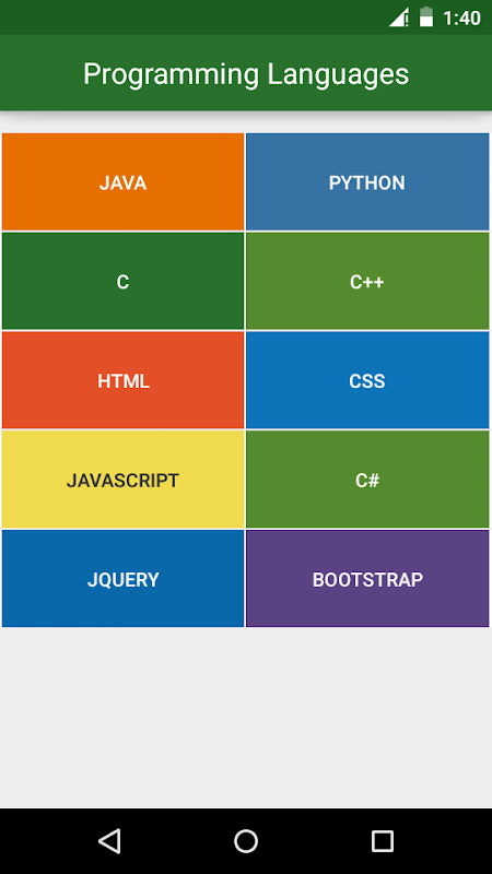 무료 응용 프로그램은 자바, 파이썬, C, C ++, HTML, CSS, 자바 스크립트, C #을, jQuery를, 부트 스트랩과 같은 프로그래밍 언어 10+ 배울 수 있습니다.