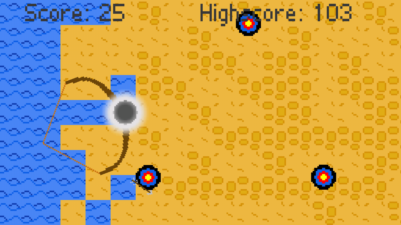 - 활과 화살을 들고 표적을 향해 쏘세요!