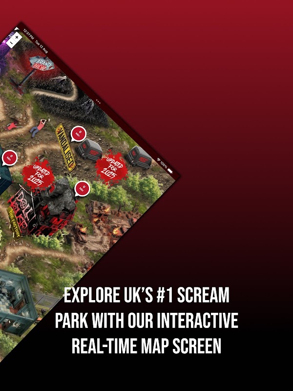 어둠 속에서 길을 잃지 마세요. 실시간 인터랙티브 놀이공원 지도가 현재 위치와 모든 공포 구역, 어트랙션, 음식 가판대, 화장실 위치를 정확하게 표시합니다. 다음 악몽을 쉽게 찾아보세요.