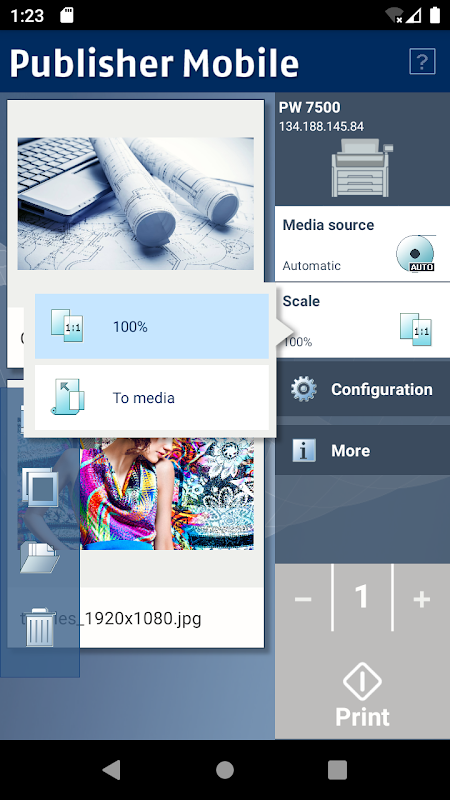 Publisher Mobile을 사용하면 PDF, DWF, PLT (HP-GL, HP-GL / 2, HP RTL), JPG 및 TIFF 문서를 로터로 인쇄 할 수 있습니다. 문서를 다시 인쇄하고, 플롯 크기를 조정하고, 기본 설정에 액세스하고, 플로터의 대기열, 미디어 및 잉크 / 토너 상태를 언제든지 볼 수 있습니다. 20 개 언어로 제공됩니다.