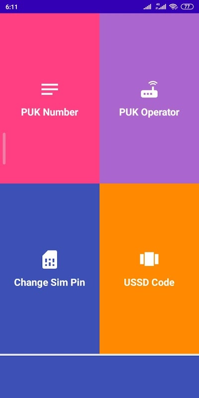 This Puk unlock code app has mainly 4 Parts that has USSD codes also included with it