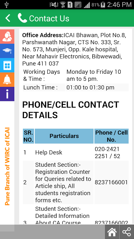 Pune Branch of WIRC of The Institute of Chartered Accountants of India ( ICAI ) identified the need of Mobile Application for it's stakeholders ( Members, Students & Others ).