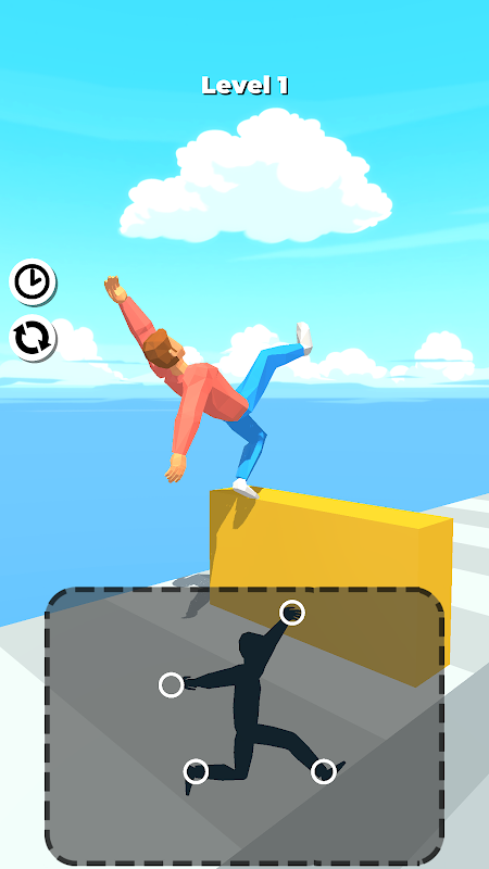 완전히 물리학 기반 캐릭터를 제어하고 2D 꼭두각시 투영으로 그를 제어하십시오. 뼈의 피벗을 이동하여 레벨과 장애물을 통과하는 올바른 자세를 설정합니다. 장애물을 피하거나 캐릭터의 속도를 높이려면 다양한 포즈를 사용하세요. 사람은 2D 인형의 투영을 완전히 복사하고 올바른 포즈를 설정합니다. 완전한 ragdoll 시스템은 무한한 가능성과 놀라움을 제공합니다.