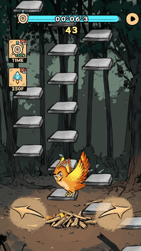 - 컨트롤은 간단하고 직관적입니다. 왼쪽 및 오른쪽 화살표 키를 탭하기만 하면 캐릭터가 해당 방향으로 사다리 위로 이동합니다.