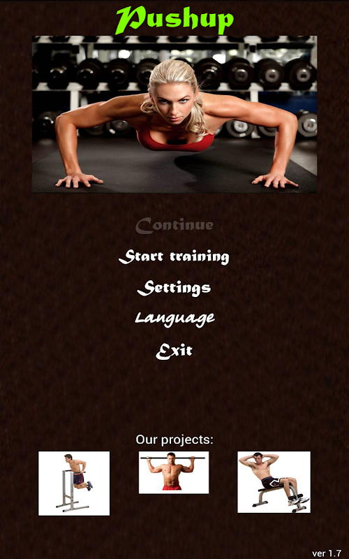 응용 프로그램은 "개인 트레이너"입니다. 이십일를 들어, 하루에 한 번을 사용합니다. 20 일에 당신은 300 개 이상의 팔 굽혀 펴기 5 세트에 할 것입니다. 개인적으로 조사했다. 실제 코치로부터 촬영 방법론 접근.