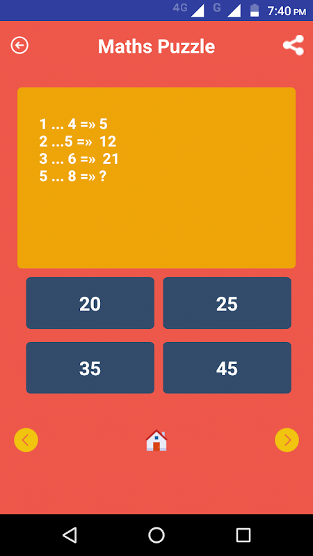This game consists of a math quiz and each quiz consists of random puzzles.