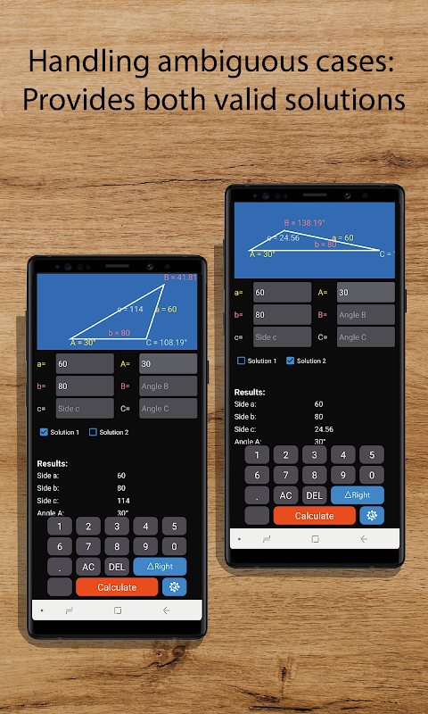 - 모호한 경우 해법 - SSA 삼각형에 대한 두 가지 가능한 결과를 모두 제공합니다.