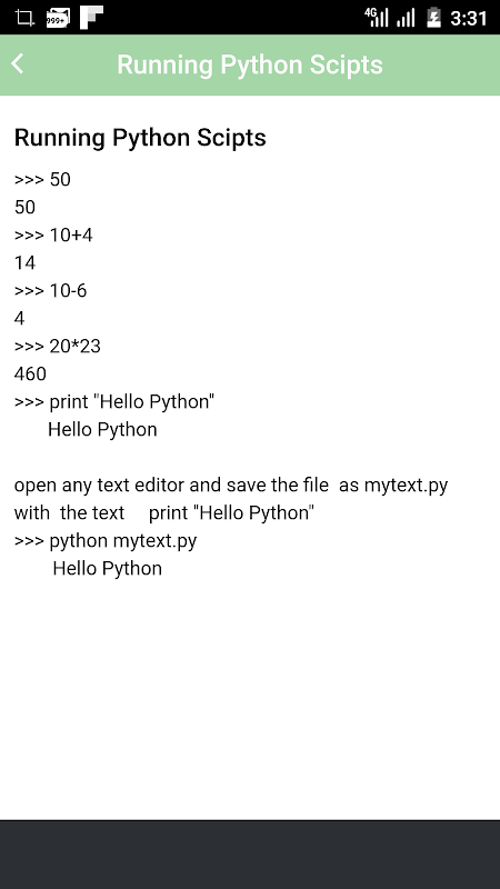 Learn Python using Python Tutorial android application will give knowledge on python basics, required concepts for developing any kind of application. Python is a very powerful language. It also useful for python for data scientists.