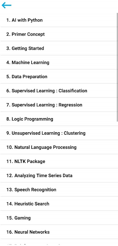 Python Tutorial 앱은 다음 주제를 다룹니다.