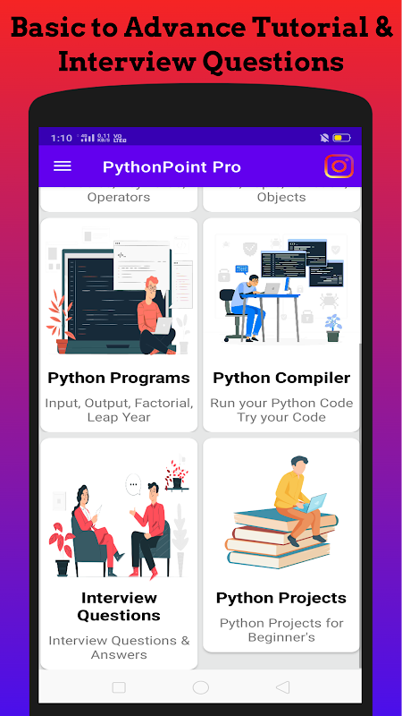 "PythonPoint Pro" 앱은 기초를 배우려는 사람이든 전문 프로그래머가 되려는 사람이든 상관없이 코드 학습을 재미있게 만듭니다. 다음은 Python 프로그래밍 언어를 배우기 위한 단일 선택이 될 기능입니다.