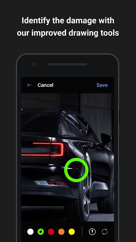 -차량 마스크와 안내 단계를 사용하여 손상된 차량의 사진을 찍습니다.