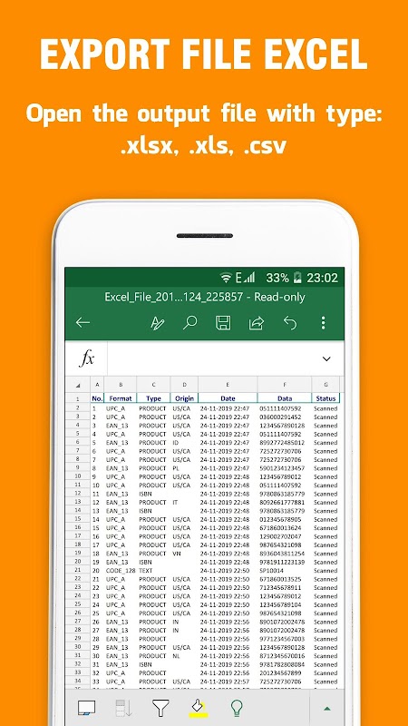 + Excecl 또는 CSV 파일로 스캔 한 후 목록 코드 내보내기.