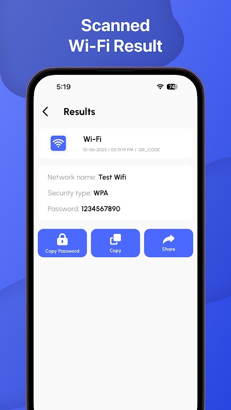 WiFi 비밀번호 확인에는 QR 코드 스캐너를 사용할 수 있습니다.