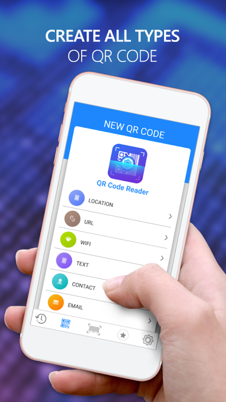 All-in-one: QR Code Reader - BarCode Scanner & QR code generator (all 1D & 2D code types) to get Links, Text, Contact info. etc. Multiple options for your QR scan result. Price scanner Reading, opening, sharing and so on, just in your touch. (all result types supported: URLs, Text, ISBN, Email, Contact, Calendar, Geo, Phone number, SMS, WIFI connection)