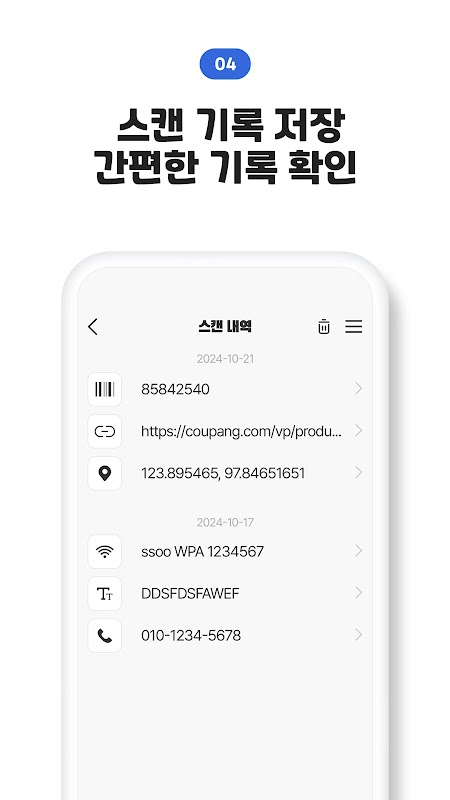 ● 모든 스캔 기록이 생성되어 저장 (Save your history)