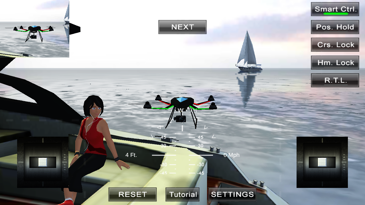 첫번째 사람보기 (FPV), HUD, 귀국 물론 잠금, 홈 잠금, 카메라 짐벌, 아크로 모드, 아크로 3D 모드 등을 통해 쿼드 콥터 / 멀티 콥터 RC 무인 항공기 시뮬레이터 ..