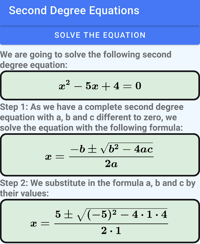 사용자는 2차 방정식을 풀 수 있습니다. 이렇게 하려면 계수 a, b 및 c의 값을 도입해야 합니다. 방정식이 표준 형식인 경우