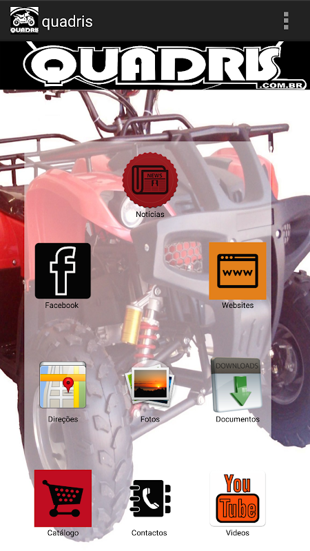 aplicativo desenvolvido para clientes dos quadriciclos quadris. Solidez com imp e exp ltda, montadora dos quadriciclos quadris apresenta seu novo app, aqui você encontra videos que ajudam na manutenção e funcionamento de nossos produtos. Galeria de fotos de nossos produtos e de nossa fabrica, blog e contatos.