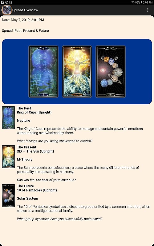 양자 타로는 과학에서 영감을 얻었으나 타로의 깊은 신비주의 진리에 힘 입었습니다. 이 화려한 데크로 읽으려면 과학적 배경이 필요하지 않으며 카드에 RWS 타로에 대한 많은 시각 자료가 있습니다.