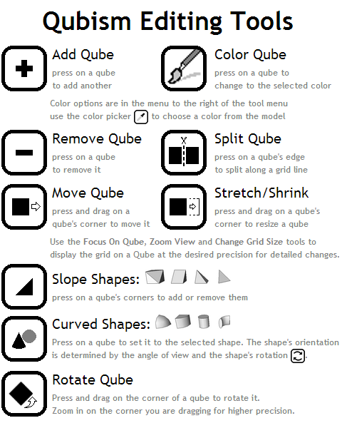 Qubism 을하는 것은 당신이 설계하고 터치 스크린 장치를 사용하여 간단한 3D 모델을 구축 할 수 있습니다. 그것은 이동, 신장, 경사, 모양, 회전 및 몇 터치와 컬러, 'qubes', 추가, 삭제 할 수있다라는 디지털 건설 블록이 작업을 수행합니다.