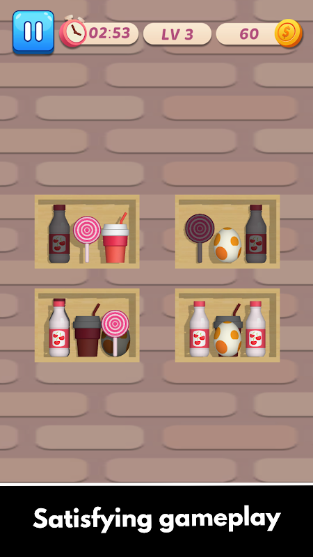 선반을 비우고 만족스러운 퍼즐을 풀기 위해 상품을 빠르게 매치하고 정리하세요