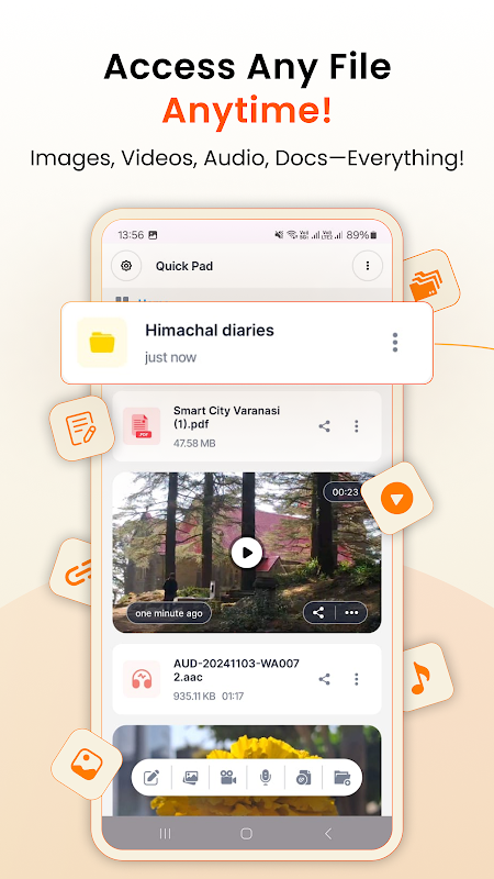 🚀 Quick Pad는 중요한 파일을 손쉽게 저장, 정리, 액세스할 수 있게 해주는 최고의 파일 관리 앱입니다. 텍스트 메모, 이미지, 비디오, 오디오 파일, 문서 또는 기타 파일이든 Quick Pad는 모든 것을 손끝에 보관합니다. 더 이상 다른 앱을 검색할 필요가 없습니다. Quick Pad를 열고 필요한 항목에 즉시 액세스하세요!