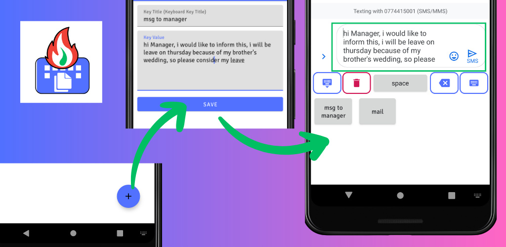 이 키보드는 텍스트를 저장하고 지정된 키를 누를 때 붙여넣을 수 있습니다.