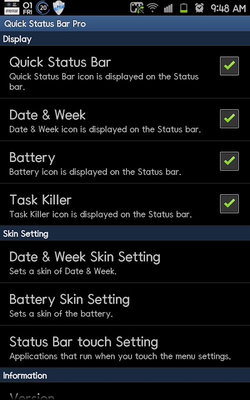 APKPure는 바이러스 없는 Quick Status Bar_상단바/배터리/날짜/요일 APK 다운로드를 위해 서명 확인을 사용합니다.