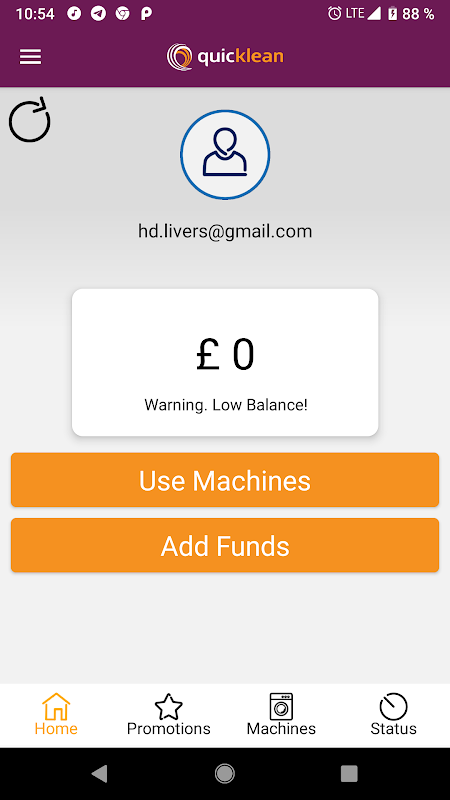 After you have the app downloaded on to your smartphone, sign up using you email address and unique password. The app will then ask you to scan a machine so that we know where you want to do your laundry.