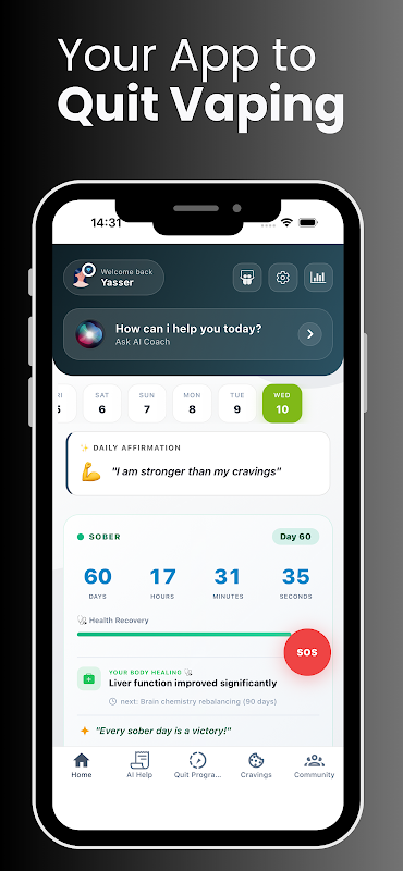 💰 절약 계산기: 베이핑을 끊음으로써 얼마나 많은 돈을 절약했는지 확인해 보세요. 더욱 건강한 라이프스타일을 구축하는 데 집중하면서 저축이 늘어나는 모습을 지켜보세요.