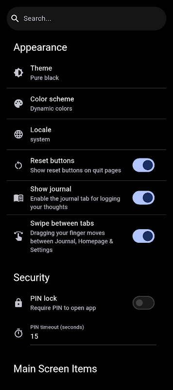 - 13가지 사전 설정된 중독 추적기(의학적 근거에 기반한 이정표 포함)