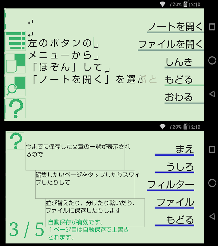 Another app "RK note" is for making short notes, and this "R-Kana note" is for making long sentences.