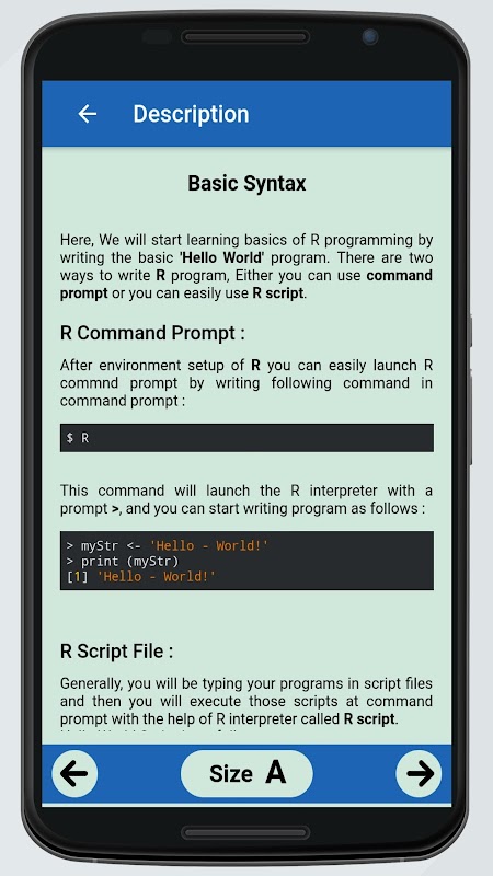 R Tutorial is a complete application for those who want to learn R easily and for free. This application provides tutorial for beginners as well as a working professional. R Tutorial application provides good understanding to Data science. This step-by-step guide is letting you know each and every aspect of R.