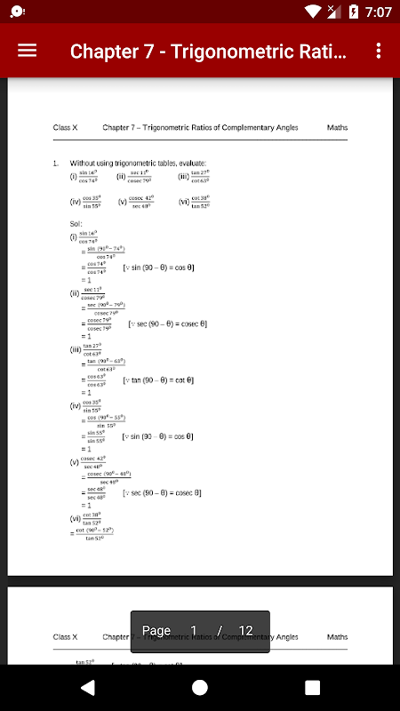 ➽ Chapter 7 - Trigonometric Ratios of Complementary Angles