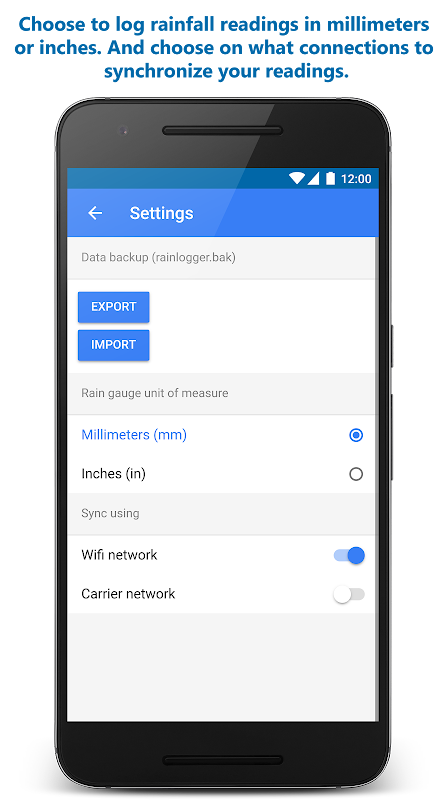 우리는 당신이 Rainlogger에 입력 한 데이터의 손실에 대해 책임을지지 않습니다주의하시기 바랍니다.